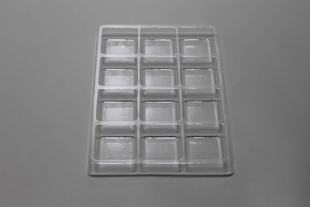 Designed for artisan chocolates and candies. Holds 12 chocolates. (chocolate insert 2,5 x 1,1 x 2,5 cm)