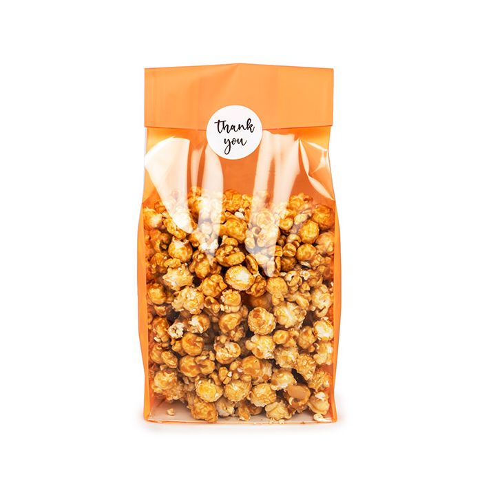 Stand out and stand up with Neon Orange Flat Bottom Gusset Bags w/ Paper Inserts. Measuring 12,7x7,6x30,5 cm, FGPB1NO was designed to hold baked goods, bulk candy, cosmetics, pet supplies, crafts, gifts, party favors, and more! Made from 40 micron heat sealable, food safe OPP material, these unique bags come with a pre-inserted white paper insert to give the bag extra stability. With neon orange side and back panels and a clear front, this bag allows your product to be seen while keeping it enclosed and protected. For easy loading, these bags come open ended but can be closed with a heat sealer, pre-tied bow, ribbon, or folded down the top and secured with custom labels or stickers.