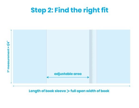 For books 18.4 cm tall and up to 38.1 cm long (width of front and back cover + width of spine). The width of the clear cover is adjustable.