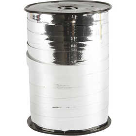 Curling Ribbon, W: 10 mm, glossy, metallic silver, 250 m/ 1 roll [HOB-20222]