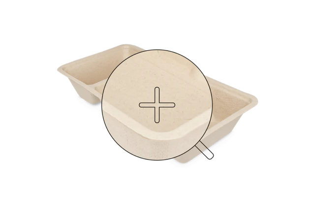 These trays are completely plastic free and therefore also environmentally friendly. With the size of 8.5x3x16 cm, these trays are suitable for smaller portions of fries, or snacks. The container has a separate sauce compartment so that you can sink the sauce apartment.