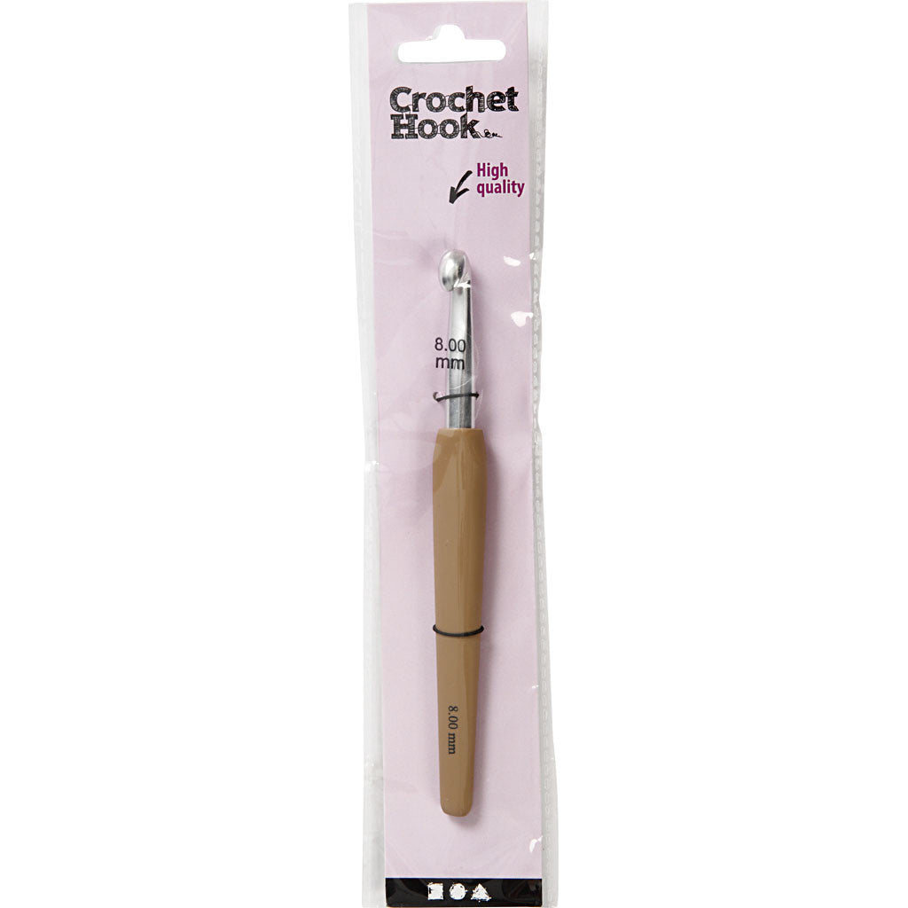 Crochet Hook, no. 8, L: 14,5 cm, size 8 mm, brown, 1 pc [HOB-42387]