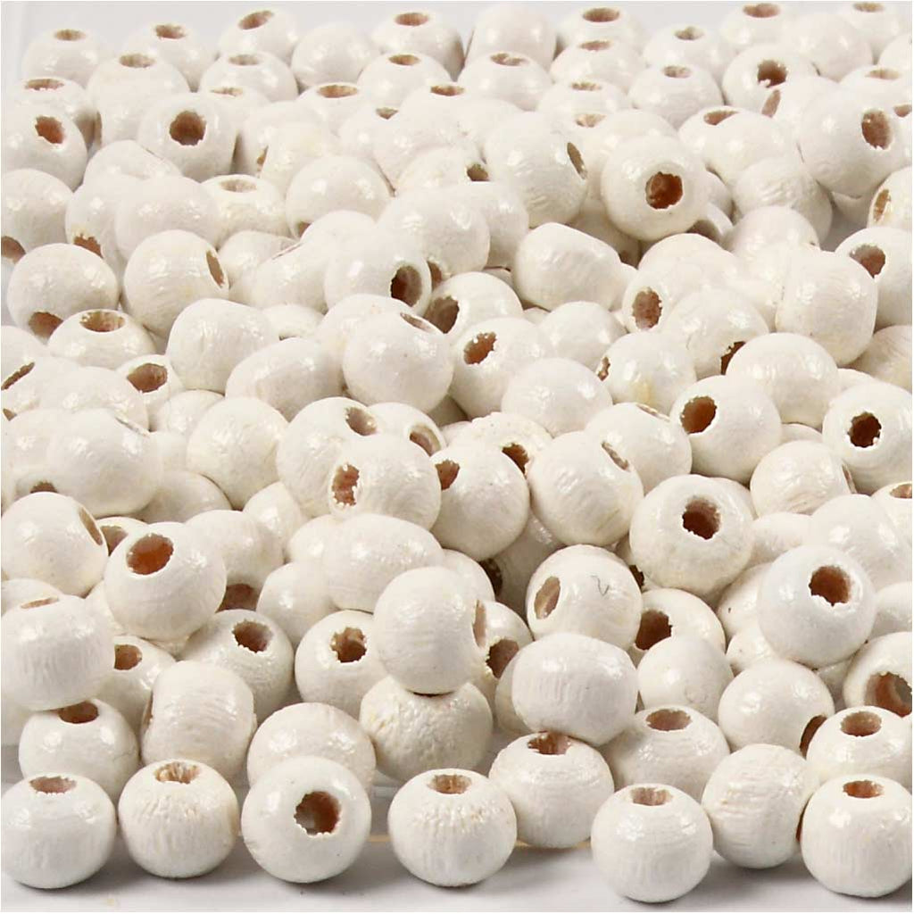 Wooden Beads, dia. 5 mm, hole size 1,5 mm, ca. 150 pc, white, 6 g/ 1 pack [HOB-570392]