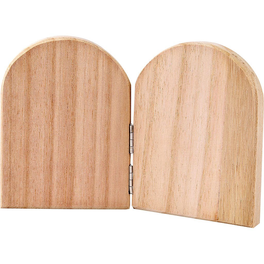 Two fold wood icon with metal hinges.