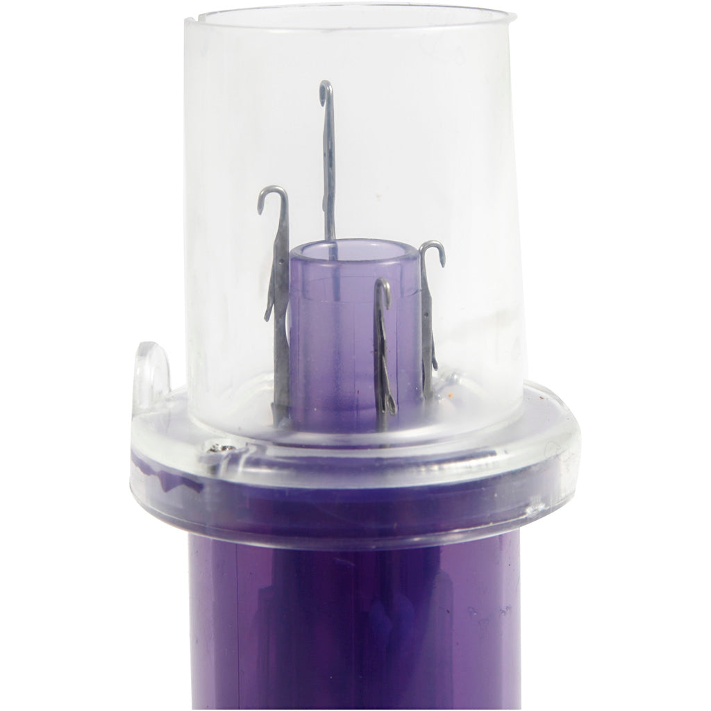 Practical, semi-automatic knitting lace with hand crank for easy manufacture of knitted tubes. We recommend 'light' yarn for crochet hook 2.5-3.5. Contents: Semi-automatic knitting, pilot and guide.