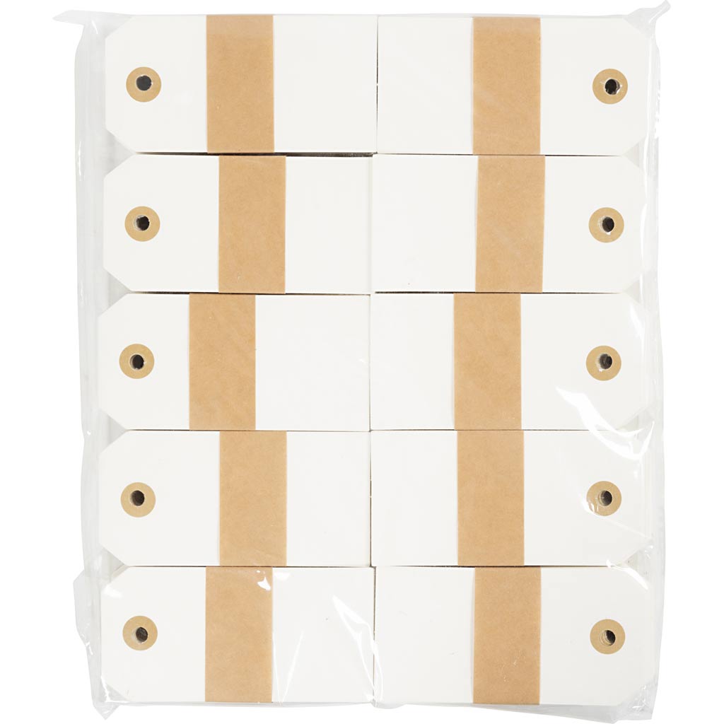 Gift tags made of card with a hole for ribbon or string.