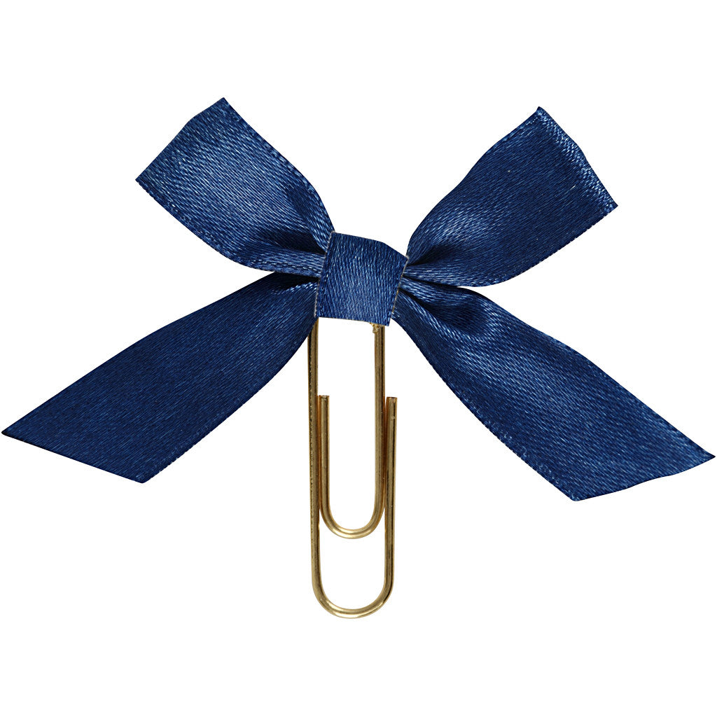 Gold plated metal clip with on-band bow of satin ribbon. Used as decoration and effect on cards, invitations, gifts, scrapbooking, planner and much more.