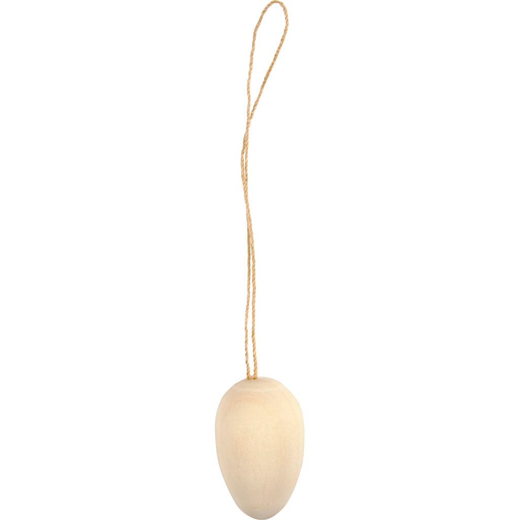 Mini wooden egg in excellent and smooth quality with string.