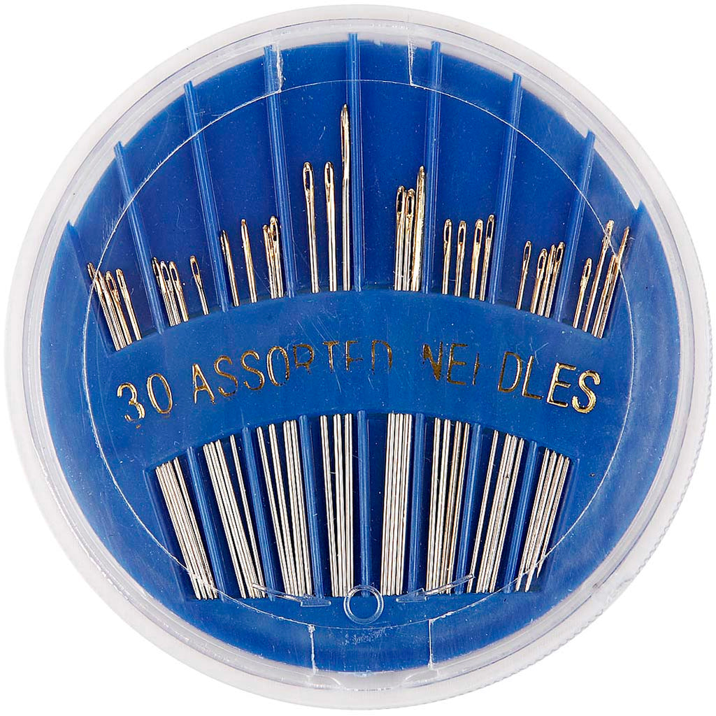 Practical dispenser pack containing assorted craft needles in different sizes.