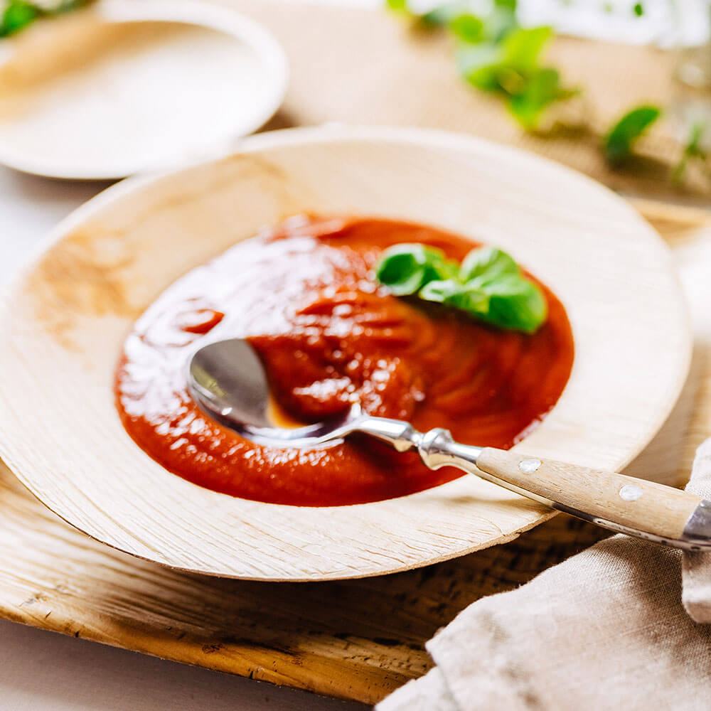 Palm leaf products can become soft over time, this is why we recommend that you use the products only for immediate consumption and not to store food for a longer period of time.