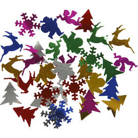 Assortment of sequins in various shapes and colours.