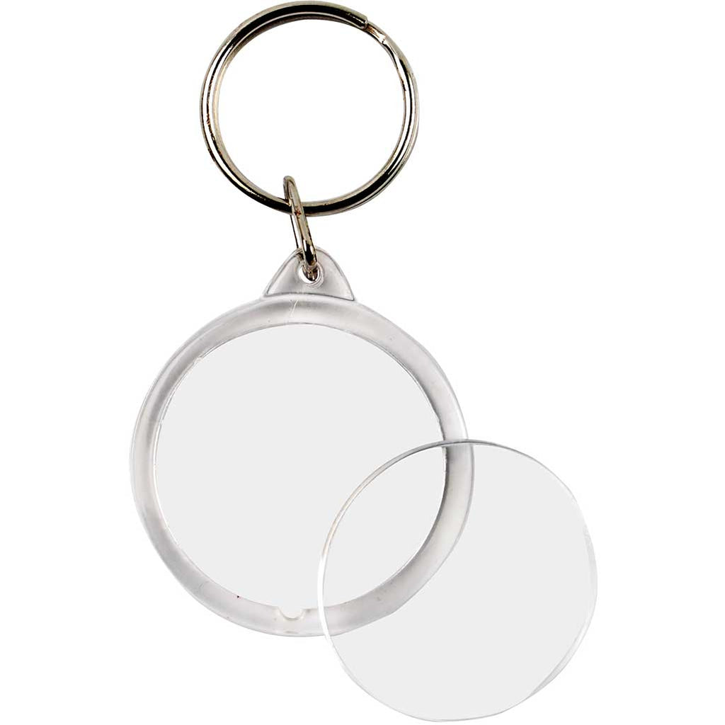 Key ring of transparent acrylic - with slot to insert your own drawings, photos etc.