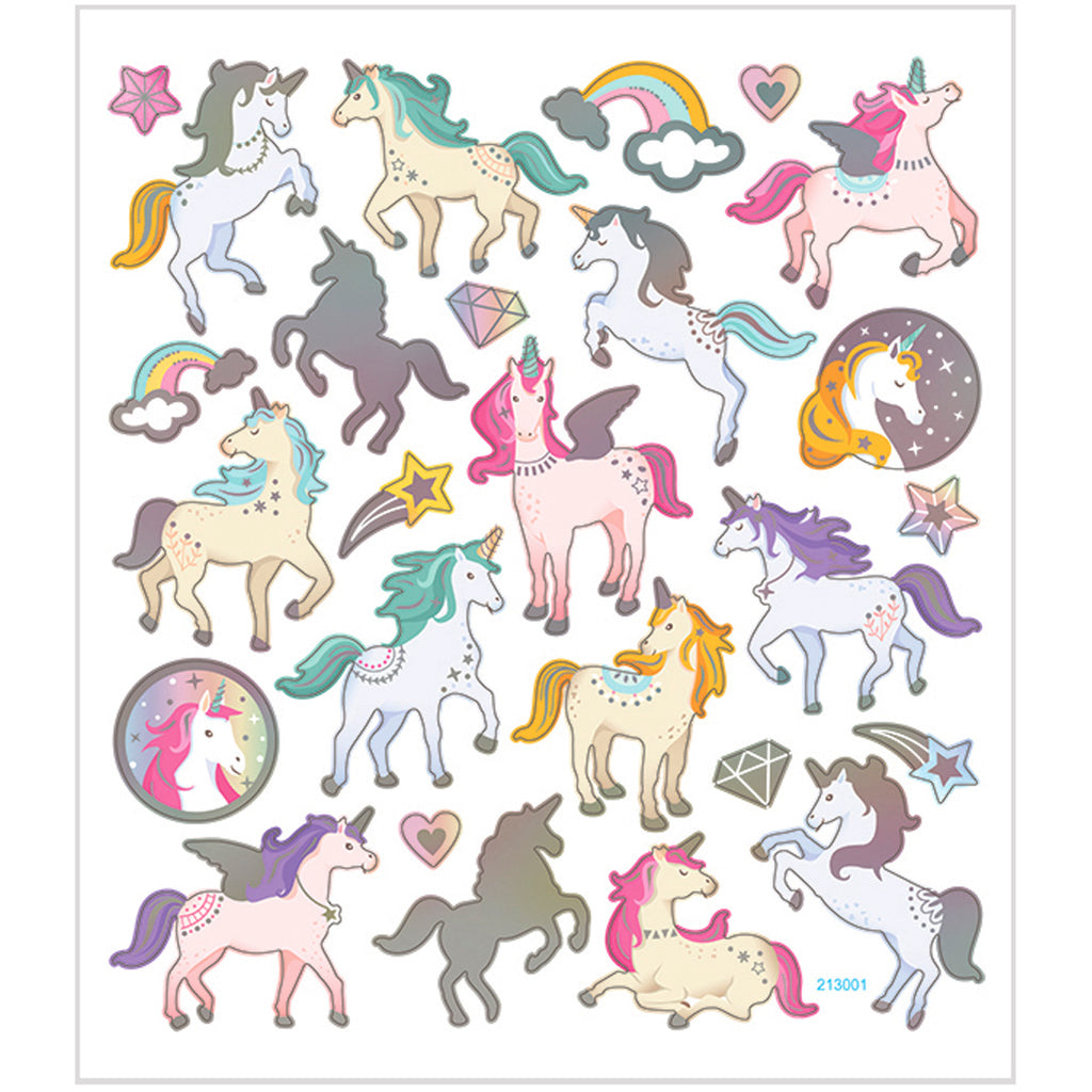 Stickers, unicorns, sheet 15x16,5 cm, ca. 27 pc, 1 sheet [HOB-29171]